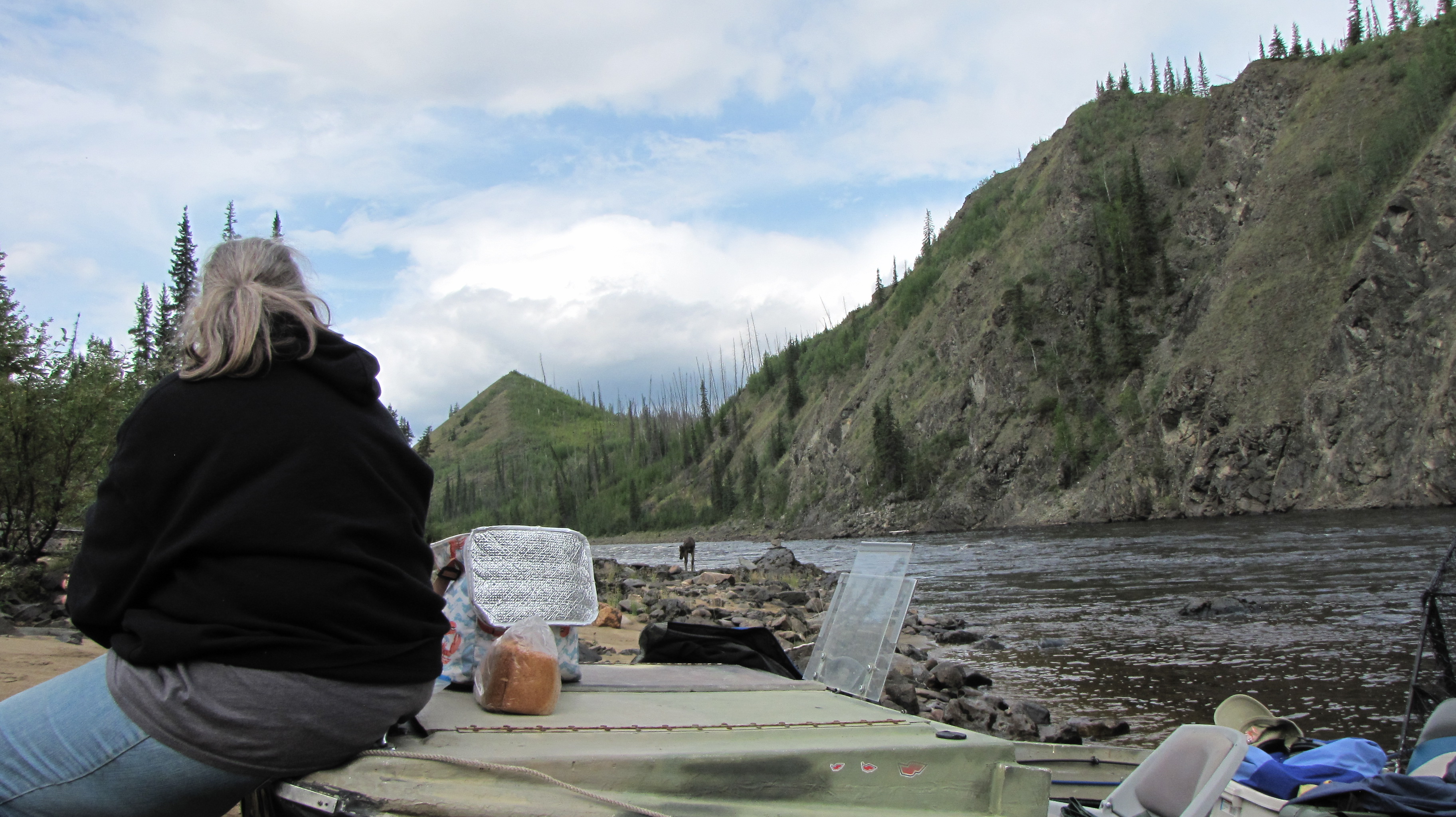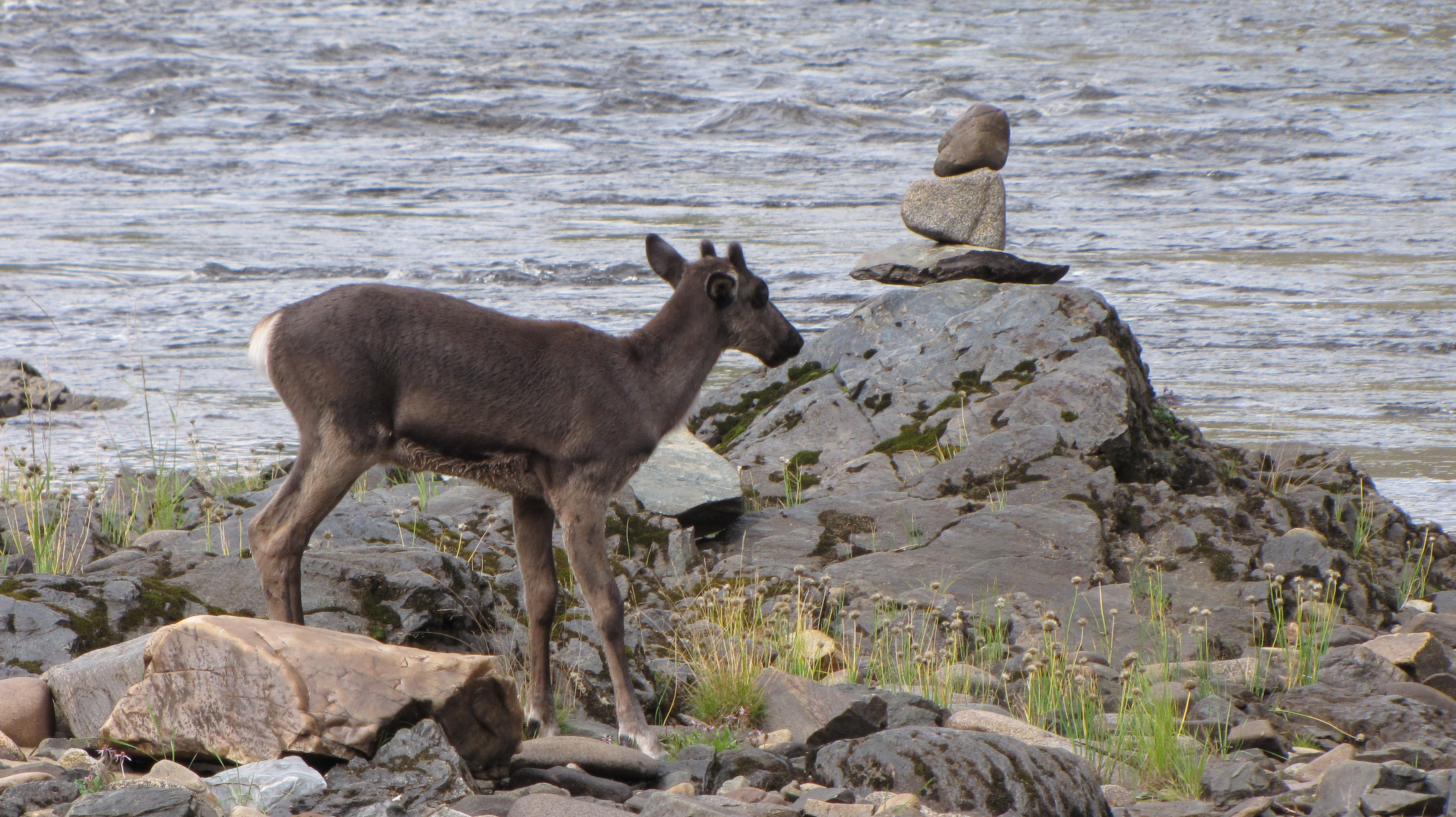 As we ate lunch this small lone caribou came up to with in a few feet of us. if you watch the video carfully you can see it in the movie.