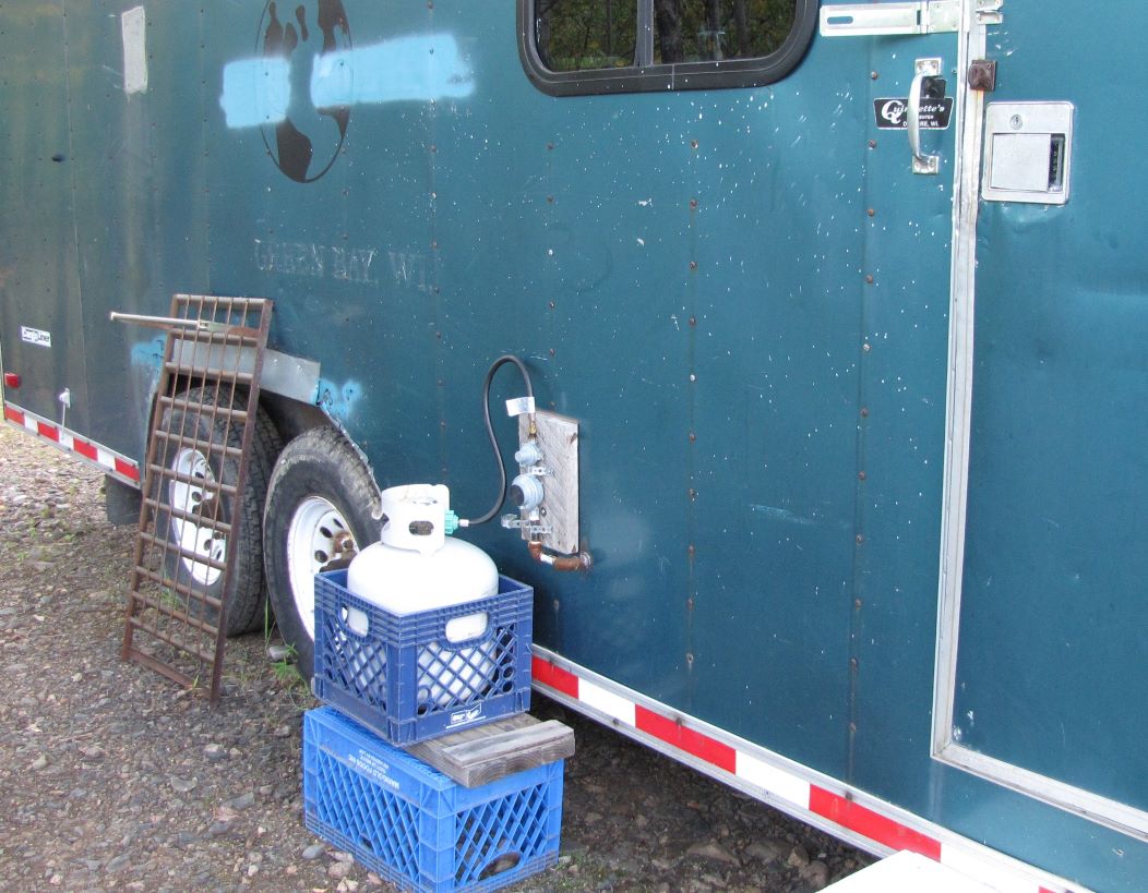 It's basicly a cargo trailer that I have upgraded with 2 beds, a table, cabinets, and a propane stove